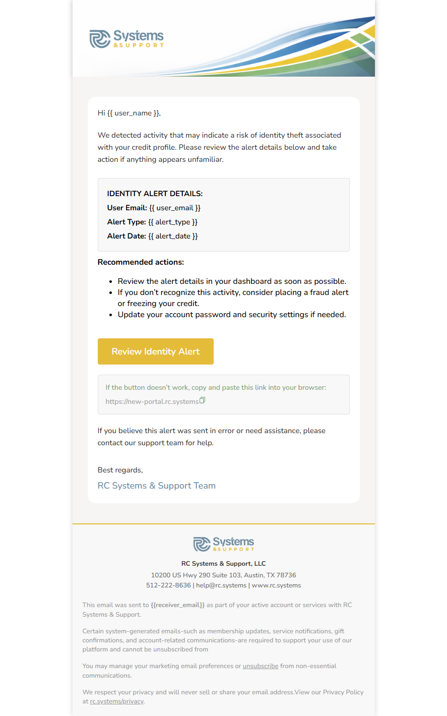 Identity Theft Alert — Action Required on Your Account