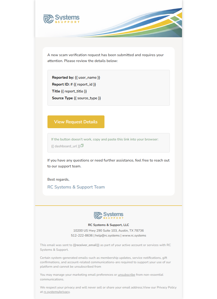Scam Verification request created